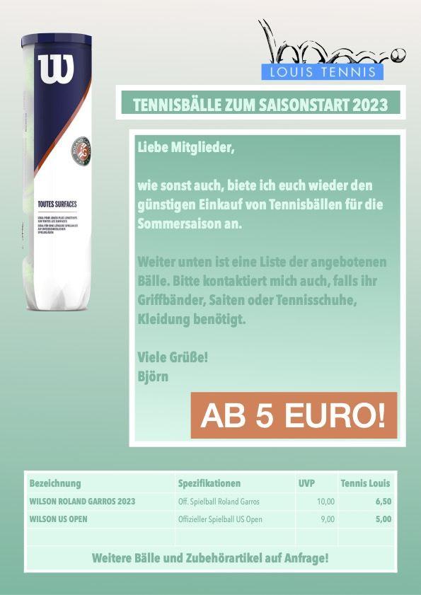Ab sofort können im neuen Tennisshop sämtliche Tennisartikel wie Tennisschläger, Tennistaschen, Tenniskleidung, Tennisschuhe, Tennissaiten , Tennisbälle und weiteres Zubehör bestellt werden.