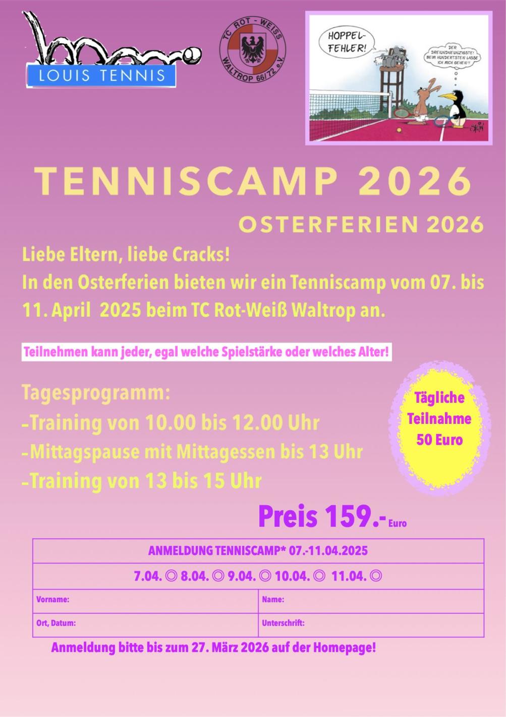 In der Tennisschule TENNIS LOUIS kann durch Tenniskurse, fortlaufendes Saisontraining und durch Einzelbuchung das Tennisspiel erlernt werden. Schläger und Bälle stellen wir gerne zur Verfügung.